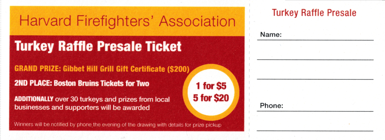 The Harvard Fire-EMS Association annual turkey raffle for 2025 will be held on Friday November 14th...